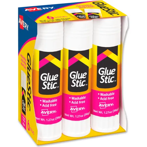 Avery® Permanent Glue Stics, White Application, 1.27 oz, 6/Pack