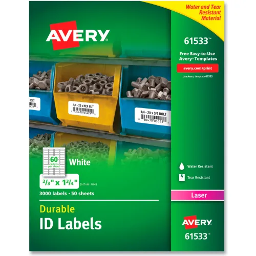 Avery® Permanent ID Labels with TrueBlock Technology, Laser, 2/3" x 1-3/4" , 3000/Pack