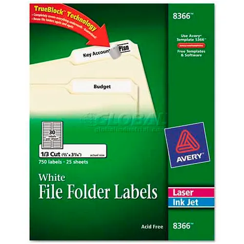 Avery® Permanent Self-Adhesive Laser/Inkjet File Folder Labels, White, 750/Pack