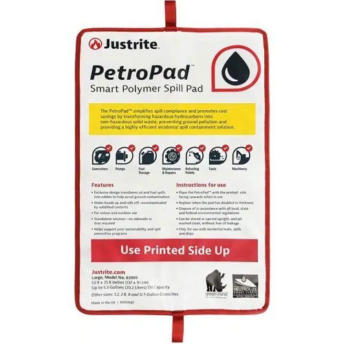 Justrite® PetroPad Smart Polymer Spill Pad, 35-13/16"L x 53-7/8"W, Large, White