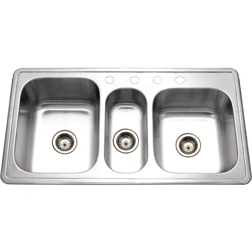 Houzer® PGT-4322-1 Drop In Stainless Steel 4-Hole Triple Bowl Kitchen Sink