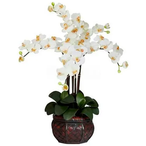 Nearly Natural Phalaenopsis with Decorative Vase Silk Flower Arrangement, Cream