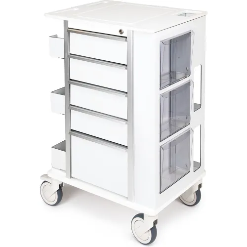 Omnimed Phlebotomy Cart, 5 Drawers & Key Lock, 23-1/2"L x 17-3/4"W x 42"H, Off White