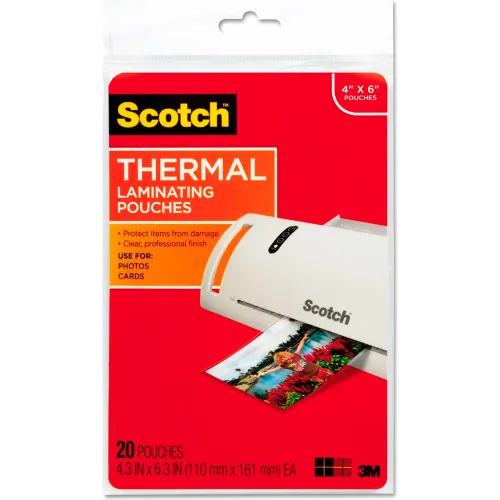 Scotch® Photo Size Thermal Laminating Pouches, 5 mil, 6 x 4, 20/Pack