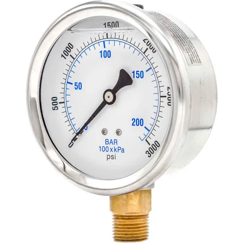 Pic Gauges 4" Pressure Gauge, Liquid Filled, 3000 PSI, Stainless Case, Lower Mount, 201L-402P