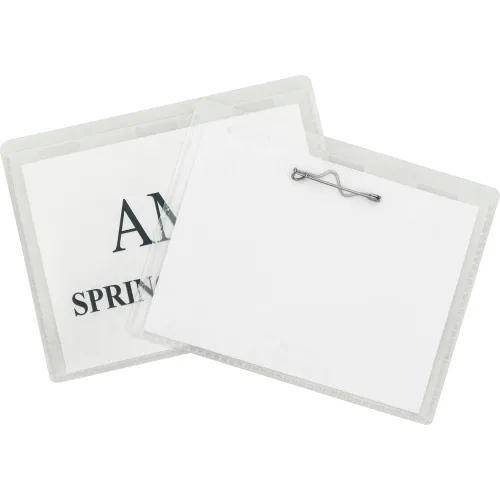 C-Line Products® Pin Style Name Badges, Kit with Inserts, Clear, 3-1/2" x 2-1/4", Pack of 100