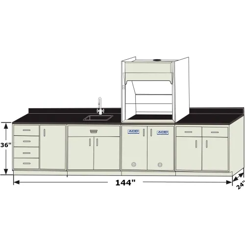 HEMCO® Pioneer Base Cabinet Grouping with CE AireStream Fume Hood, 144"W x 24"D x 81"H