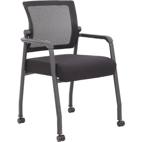 Boss Office Products® Pivot Back Mesh Gues Chair on Casters with Arms, Black