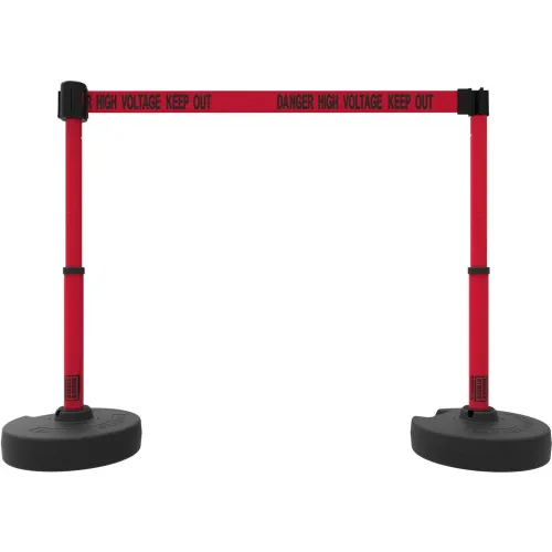 Banner Stakes PLUS X2 Barrier Set, 42" Red Post, 15' Red "Danger High Voltage Keep Out" Belt