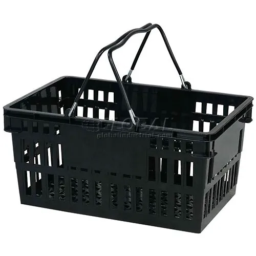 VersaCart ® Black Plastic Shopping Basket 26 Liter w/ Plastic Grips Wire Handle, Pack Qty of 12
