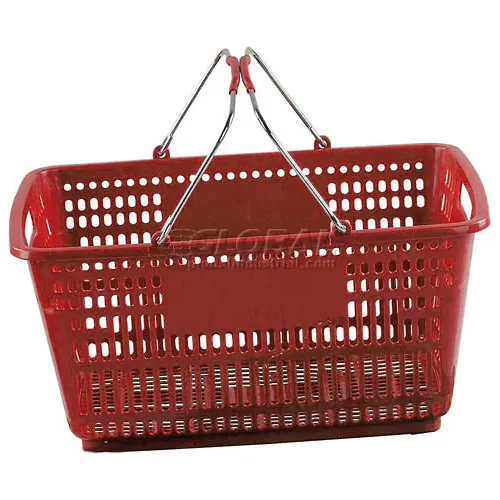 VersaCart ® Red Plastic Shopping Basket 30 Liter w/ Plastic Grips Wire Handle, Pack Qty of 20