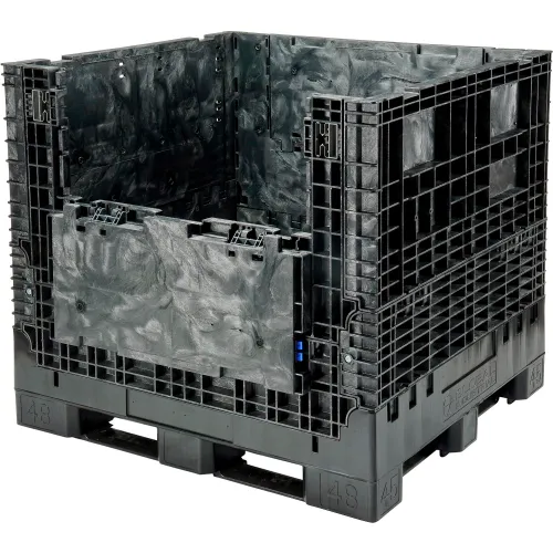 Global Industrial Folding Plastic Bulk Container, 48"L x 45"W x 44"H, 2000 lb. Cap., Black
