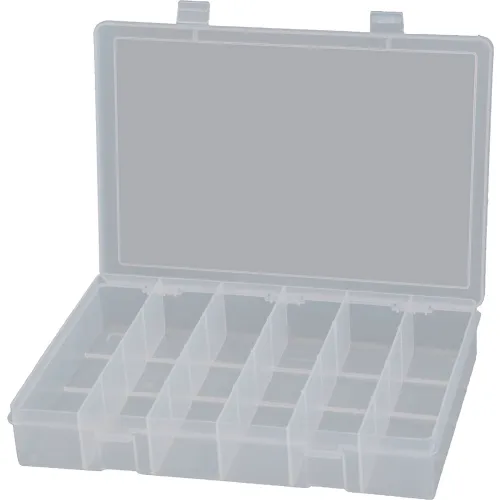 Durham Mfg.® Plastic Compartment Box, 6 Openings, 13-1/8"W x 9"D x 2-5/16"H, Clear - Pkg Qty 5