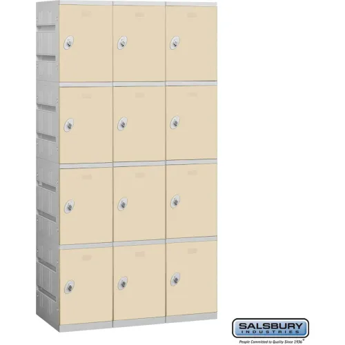 Salsbury 4-Tier 12 Door Plastic Locker, 38-1/4"W x 18"D x 74"H, Tan, Unassembled