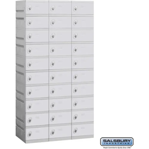 Salsbury 10-Tier 30 Door Plastic Locker, 38-1/4"W x 18"D x 74"H, Gray, Unassembled