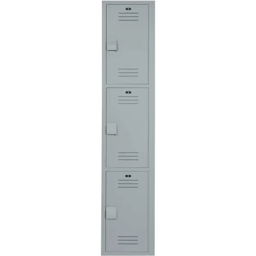 Bradley® 3-Tier 3 Door Lenox Plastic Locker, 12"W x 12"D x 60"H, Gray, Assembled
