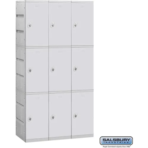 Salsbury 3-Tier 9 Door Plastic Locker, 38-1/4"W x 18"D x 74"H, Gray, Unassembled