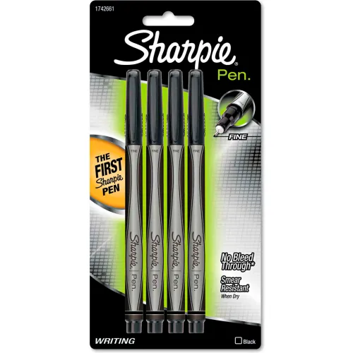 Sharpie® Plastic Point Stick Water Resistant Pen - Black Ink - Fine - 4 Pack