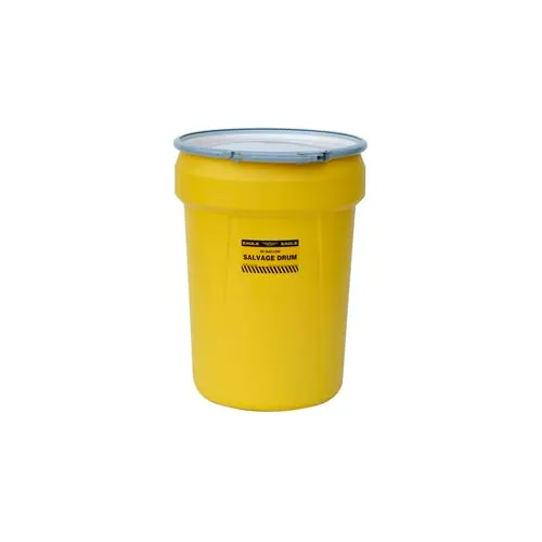 Eagle 1602 Plastic Salvage Drum - 30 Gallon - Yellow with Metal Lever-Lock Ring