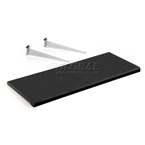 Global Industrial™ Slatwall Shelf 48 X 15 Black Plastic With 3 Brackets, Pack of 4