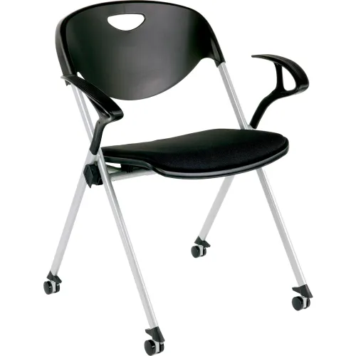 Interion® Plastic Stacking & Nesting Folding Chair with Armrests & Casters, Black, 2/PK