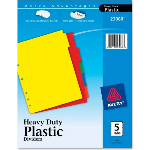Avery Plastic Tab Divider, Blank, 8.5"x11", 5 Tabs, Multicolor/Multicolor