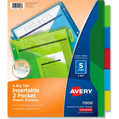 Avery® Plastic Two-Pocket Insertable Dividers, Assorted, 5 Tabs/Set
