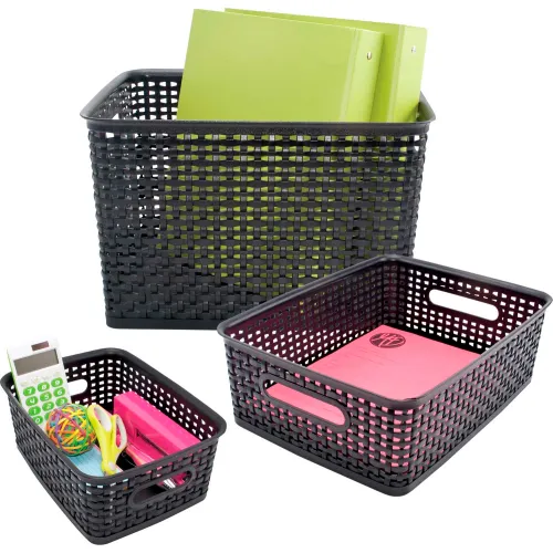 Advantus® Plastic Weave Bin Small Medium Large 40329 - 13-3/4"L x 10-1/2"W x 8-3/4"H, 3-Pack - Pkg Qty 2