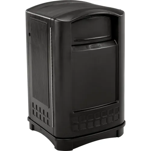 Rubbermaid® Plastic Square Side Opening Trash Can, 50 Gallon, Black