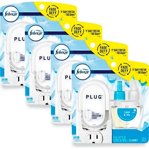 Febreze® PLUG Air Freshener Warmer Start Kit, 0.85 oz. Refill, Clear/White, 4/Case