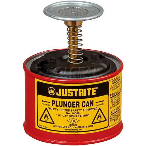 Justrite Plunger Can, 1-Pint, Red, 10008