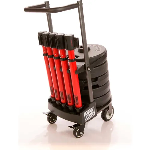 Banner Stakes PLUS Cart Package, 22"-42" Red Post, 15' Red "Danger-High Voltage Keep Out" Belt