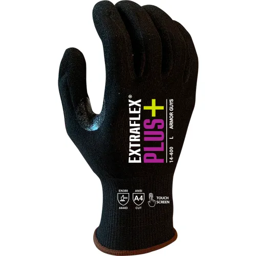 ExtraFlex Plus® Cut Resistant Gloves, Nano Foam Nitrile Coated, ANSI A4, XL, Black, 12 Pairs