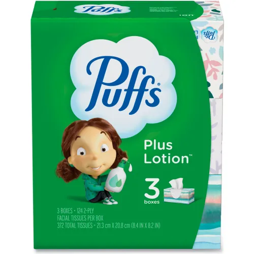 Puffs® Plus Lotion Facial Tissue, White, 2-Ply, 124/Box, 3 Box/Pack, 8 Packs/Carton