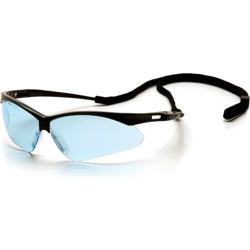 Pmxtreme™ Safety Glasses Infinity Blue Lens , Black Frame & Cord - Pkg Qty 12