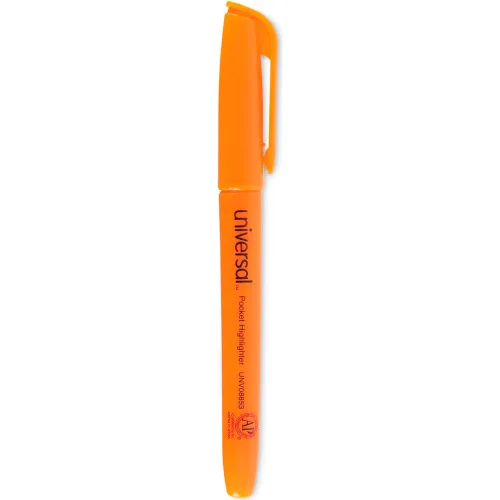 Universal Pocket Clip Highlighter, Chisel Tip, Fluorescent Orange Ink, 1 Dozen