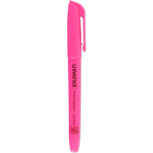 Universal Pocket Clip Highlighter, Chisel Tip, Fluorescent Pink Ink, 1 Dozen