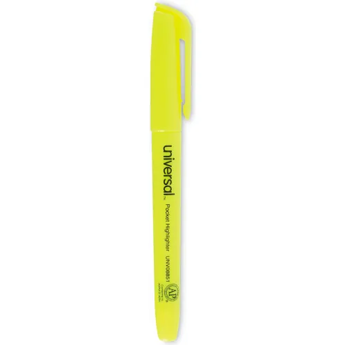 Universal Pocket Clip Highlighter, Chisel Tip, Fluorescent Yellow Ink, 1 Dozen