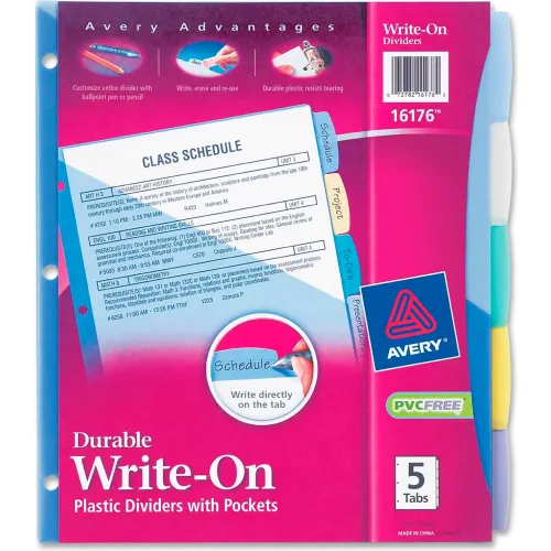 Avery Pocket Divider, Write-on, 8.5"x11", 5 Tabs, Multicolor/Multicolor