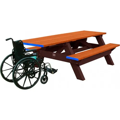 Polly Products Deluxe 8' Picnic Table, ADA Compliant, Cedar Top/Brown Frame