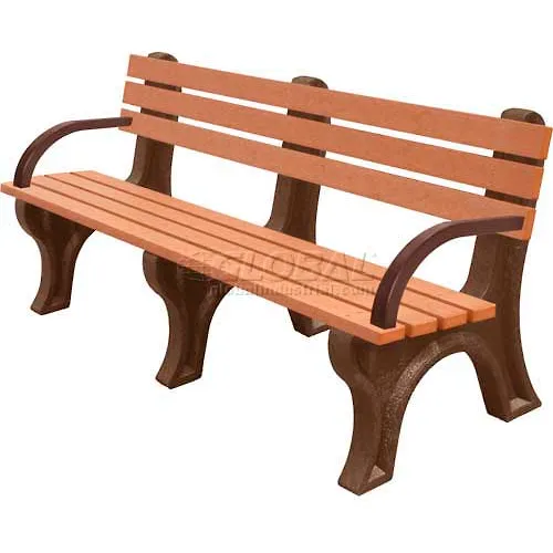 Polly Products Econo Mizer 6' Backed Bench w/ Arms, Green Bench/Brown Frame