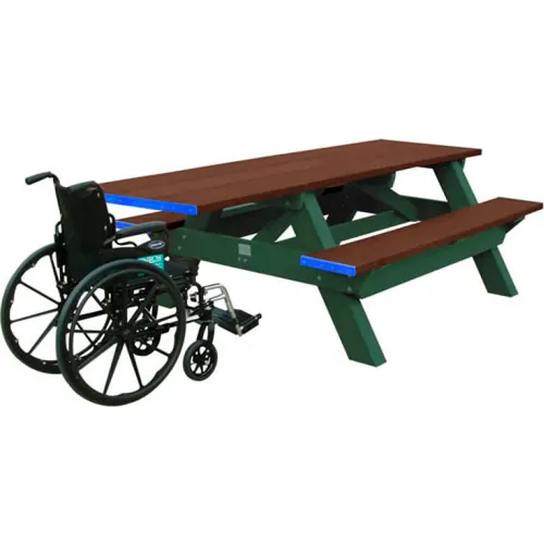 Polly Products Standard 8' Picnic Table, One End, ADA Compliant, Brown Top/Green Frame