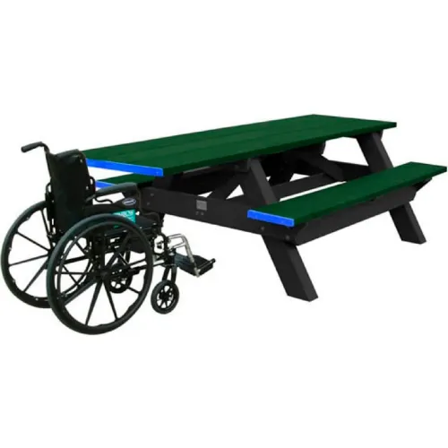 Polly Products Standard 8' Picnic Table, One End, ADA Compliant, Green Top/Black Frame