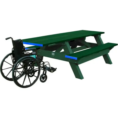 Polly Products Standard 8' Picnic Table, One End, ADA Compliant, Green Top/Green Frame