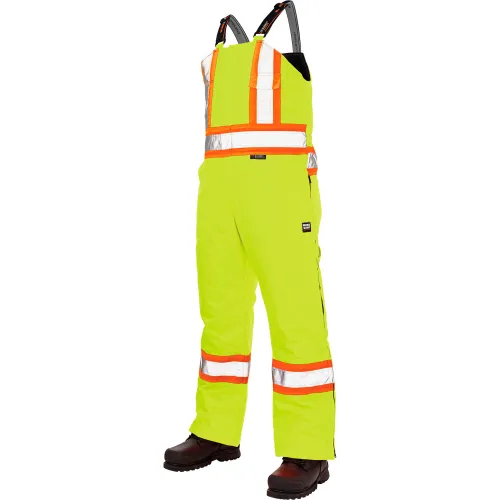 Tough Duck Poly Oxford Insulated Safety Bib Overall, S, Fluorescent Green