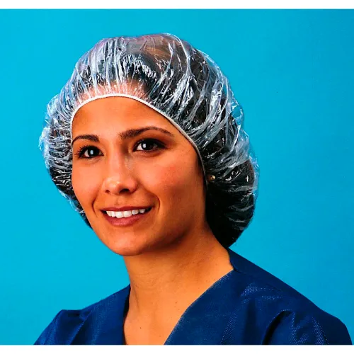 Polyethylene Bouffant Cap, 3/4 Mil, Waterproof, 100% Latex Free, Clear, 21", 100/Bag