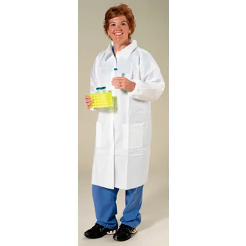 Polypropylene Lab Coat, 3 Pockets, Elastic Wrists, Snap Front, Single Collar, White, MD 30/Case