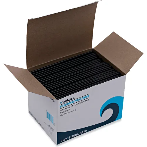 Boardwalk® Single-Tube Stir-Straws, 5.25", Polypropylene, Black, 1,000/Pack, 10 Packs/case