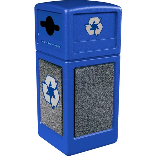 Commercial Zone® PolyTec Recycling Container w/ Pepperstone Panels, 42 Gal Cap., Blue