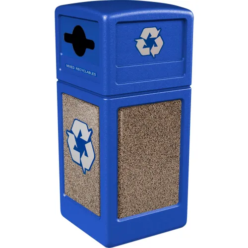 Commercial Zone® PolyTec Recycling Container w/ Riverstone Panels, 42 Gal Cap., Blue